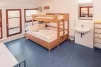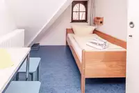 74 Betten in 20 Zimmern, überwiegend in Vierbettzimmer. 2 Gemeinschaftsräume, Gesellschaftsspiele, Tischtennisplatte außen, Sonnenterrasse.Freizeit