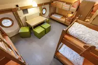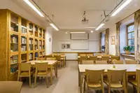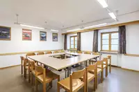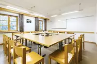 4- bis 10-Bettzimmer, Einbett- oder Zweibettbelegung für Begleitpersonen mit Dusche/WC, Arbeitsraum für die Umwelt|Jugendherberge (36 Plätze) und eine Umweltbibliothek. Fernseher, VHS-Videorecorder, DVD/CD-Player, 16 mm Filmgerät, Lichteffektanlage, Diaprojektor, Tageslichtprojektor, Kreidetafel, Weißwandtafel, Flipchart, Kopierer, Beamer. Gästewaschmaschine, TrocknerFreizeit