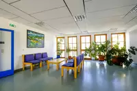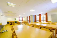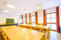 Eigene Zimmer für Begleitpersonen mit DU/WC, Speisesaal (160 Plätze), 5 Seminarräume, Mehrzweckraum, Wasch- und Trockenraum, Fernseher, Video, Overheadprojektor, Flipchartwand.