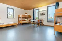 Bei den 12 Dreibettzimmern kann mit je 1 Zustellbett ergänzt werden, Bistro, Discoraum, Kinderspielzimmer. Beamer, CD- und DVD-Player, Flipchart, Funkmikrofon, Metaplanwand, Mikrofonanlage, Musikanlage, Moderationskoffer, Rednerpult, Tafel, TV, WLAN, Glasfaserinternet. Außengelände mit Volleyballfeld, Tischtennisplatte (außen), Sonnenterrasse.Freizeit