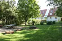 Mehrere Freizeiträume, Einstellmöglichkeit für Fahrräder, Waschmaschine und Trockner. Beamer, DVD-Player, Overheadprojektor, Flipchart, Leinwand, TV, WLAN. Tischkicker, Tischtennisplatten innen und außen, Unterhaltungsspiele, Basketballkorb, Volleyballfeld mit Tartanbelag, Freiluftschach und - mühle, überdachter Grillplatz. Spielwiese mit Kleinfeldtor,