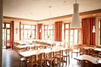 39 Zimmer zum Teil mit Balkon, davon 13 für Begleitpersonen oder Familien mit eigener Dusche/WC und Telefon. 3 Speise- und Aufenthaltsräume (123/48/42 Plätze), Fernseh- und Schulungsraum (50 Plätze), Sport & Spielraum mit Disco, Kinderspielzimmer, Aufenthaltsraum für Gruppenleiter mit Teeküche, Ski-/Snowboard und Fahrradkeller, Skiwerkstatt, Schuhraum, Trockenraum.Bemerkungen