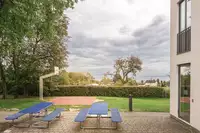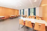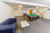 2 Freizeiträume, Bistro, Discoraum, Fahrradboxen. Beamer, Flipchart, Leinwand, CD- und DVD-Player, Metaplanwand, Moderationskoffer, TV, WLAN. Tischkicker, Billard, Tischtennisplatten innen und außen, Fußballtor, Volleyballfeld, Außenschachfeld, Spielwiese, Außensitzplätze für ca. 80 Personen.Freizeit