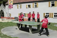 Bistro-Lounge, Beamer, CD- und DVD-Player, Flipchart, Magnetwand, Leinwand, Overheadprojektor, TV, WLAN. Digitalpiano, ,Freizeitraum mit Tischkicker und -tennis, Ravensburger Spieleschrank, Basketballkorb, Volleyballnetz, Spielwiese und Spielplatz am Haus.Freizeit