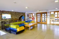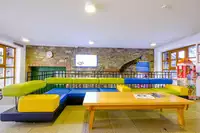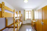 Speiseraum, großer Tagesraum, 5 Gruppenräume (36/24 Plätze), Tagungsraum, Naturstudienraum, Freizeitraum mit Kicker, Airhockey und Indoor-Slackline, Skiabstellraum, Schuhraum, Videogerät, Fernseher, Dia- und Overheadprojektor, Stereoanlage, Tafel, Kopiergerät, Beamer.Die Zimmer verteilen sich auf 2 Häuser: den Ameishof und den Lindenhof. Im Lindenhof: 9 Familienzimmer mit DU/WC, 11 Familienzimmer mit Waschgelegenheit, DU/WC auf der Etage.
