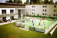 Speedsocceranlage und Aktiv-Parcours auf dem Gelände, im Winter 10 Rodel und 10 Paar Schneeschuhe im Verleih, Kicker, Tischtennisplatten, Badminton und Speedminton, Basketball und Volleyball, Kartenmaterial, in direkter Nachbarschaft: Eisarena, Kletterhalle und Sportplatz, Turnhalle, Skatepark, GolfplatzAusflugsziele: