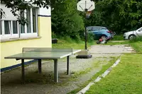 Beamer, Leinwand, Whiteboards, Fernsehgerät, Stereoanlage, Klavier, Gesellschaftsspiele. 10 Autoparkplätze. Terrasse mit Tischtennisplatte, Beachvolleyballplatz, Ballspiele und Tischtennis-Zubehör (ggf. geringf. Gebühr erhältlich), KickerKüche: großer Herd, Spülmaschine, Kaffeemaschine, Mikrowelle, Mixer, Geschirr, Besteck für bis zu 50 Personen, Große Töpfe und Bräter.