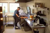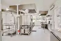 Es gibt eine gut eingerichtete Gewerbeküche mit: