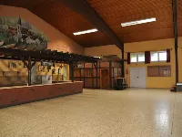 Unsere großzügige Halle bietet 500 qm Fläche, die flexibel in zwei Bereiche aufgeteilt werden kann: z.B. 300 qm für Speise- und Gruppenaktivitäten und 200 qm für Schlafbereiche. Zusätzlich steht ein 1.000 qm großer Zeltplatz mit Sportplatz direkt nebenan zur Verfügung.Die Unterkunft verfügt über eine vollausgestattete Küche und zwei Umkleidekabinen mit Duschen. Ein Internetzugang (freies WLAN oder aber auch Passwort geschützt - je nach Ihren Bedürfnisse) und eine Sat-Anlage ist vorhanden. Für die Gruppenleiter gibt es einen separaten Raum mit Fernseher. Ein großer Parkplatz rundet das Angebot ab und sorgt für eine bequeme Anreise.