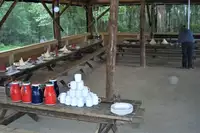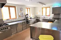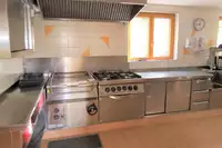 Das Versorgungshaus ist für unsere Beleggruppen, die den Zeltplatz nutzen. Auf dem Zeltplatz gilt eine Mindestbelegung von 40 Teilnehmern bzw. mindestens 348,00 Euro Gebühr für eine Nacht und es werden nur Buchungen von mindestens zwei Nächten angenommen. Der Preis liegt bei 8,70 Euro pro Person / ÜN.Das Versorgungshaus besteht aus einer gut ausgestatteten Küche (Geschirrspüler, Backofen, Gasherd, Kühlschränke, Gefriertruhe) sowie getrennten WCs und Duschen und einer Toilette mit Dusche für unsere Gäste mit Handicap.