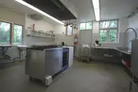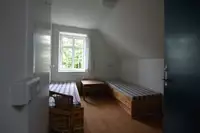 Die Gruppenunterkunft besteht aus 3 Gebäuden und bietet Platz für 56 Personen, die in 16 Zwei- bis Sechsbettzimmern untergebracht werden. Im Hauptgebäude befinden sich 2 Aufenthaltsräume und ein separater, großer Speisesaal.Küche mit Industrieofen und konventionellem Elektroherd, großem Kühlschrank und Gefriertruhe, Spülmaschine, Küchenmaschine, Brotschneidemaschine, Waschmaschine und Trockner. Ausreichend Töpfe, Pfannen, Geschirr und Besteck sind vorhanden.