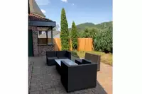Ein kleiner Garten, ausgestattet mit Terrassenmöbeln, bietet Ihnen Platz zum Entspannen.