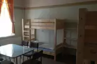 Zimmer 1-4 mit Waschbecken, je 2 Betten und Einbauschrank. Für Gäste dieser 4 Zimmer steht auch der Mehrzweckraum zur Verfügung. Er ist ausgestattet mit Tisch, Stühle, Fernseher, Kleinküche mit 2 Kochplatten, Mikrowelle, Kaffeemaschine, Kühlschrank. Selbstversorgung ist möglich. Zimmer 5 mit Waschbecken, 3 Einzelbetten, Tisch, Stühle und Ablagefächer für persönliche Gegenstände.