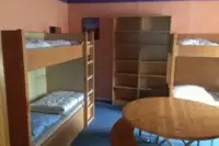 Die Zimmer im Erdgeschoss:Alle Zimmer mit Waschbecken, Etagenbetten, Tisch, Stühle und Ablagefächer für persönliche Gegenstände.