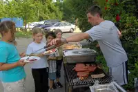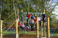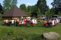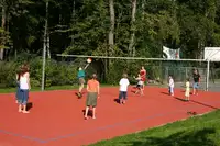 Freizeitgelände: 4000qm mit Spielwiese, Klettergeräten, Kota, Grill- und Lagerfeuerstelle, Volleyballfeld, Basketball- und Kleinfeldfußball, Bachlauf mit Kleinbiotop, Großfeldschach, TT-Platten, Wikingerschach, Picknickdecken, Slag-Line.