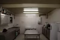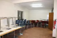Küche mit allen benötigten Küchengeräten und Geschirr, Bestuhlung und Tische in ausreichender Zahl vorhanden, Biertischgarnituren vor Ort verfügbar, 5 Toiletten (nicht behindertengerecht), 1 Toilette (behindertengerecht), 1 Dusche, 1 Waschraum, 2 große Säle zum Schlafen bzw. als AufenthaltsraumFreizeit und Außengelände