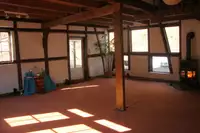 Die "Alte Mühle" bietet die beiden Schlafräume mit einmal 12 und einmal 6 Schlafplätzen (gesamt 18 Betten), sowie Küche, den sanitären Anlagen und natürlich dem großen Gruppenraum, dem Mühlenraum(56m2)