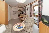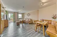 Balkon, Stauraum für Räder, Skiausrüstung, Aufenthaltsraum, kostenloses W-LAN, Fernseh-, Tischtennis- und Fitnessraum, Saunalandschaft (Finnische-, Bio-Dampf-Sauna, Infrarotkabine), Whirlwanne, Kegelbahn, Billard, Autoparkplätze, Garage.