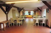 Das Haus ist veraltet, seien es die sanitäre Anlagen, das Mobiliar oder der Fernseher, ( sowas gibt es noch ) Anhand der hohen Bettenkapazitäten fehlt eindeutig der zweite Kühlschrank. Den gesamten Abend nur auf Stühlen zu verbringen ist unangenehm, Platz für eine gemütliche Sitzecke gibt es ja alle mal. Fazit: wir finden für Familien Feiern ungeeignet.