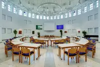 In unterschiedlich gestalteten Tagungshäusern bieten wir Ihnen ein umfangreiches, variables Raumangebot für verschiedene Gruppengrößen. 17 helle und flexibel nutzbare Seminar- und Gruppenräume laden zum konzentrierten Arbeiten ein. Vier dieser Räume sind ausgestattet mit Simultandolmetscheranlage für bis zu fünf Sprachen. Hier finden Sie Ihren maßgeschneiderten Tagungsraum.Ergänzend zur vielfältigen Raumauswahl stehen wir Ihnen mit einem umfangreichen Angebot an Konferenzdienstleistungen zur Verfügung.