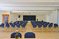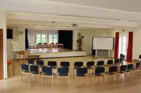 Großer Saal mit Bühne, Bibliothek, Bauernhaus mit Kamin & großer Diele, professionelle Tagungstechnik (WLAN, Beamer,...), Klaviere/Flügel, Webboden mit Webstühlen, Kapelle, Tischkicker, Fernsehraum, 40 AutoparkplätzeBemerkungen