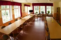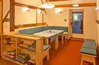 Nun schon zum wiederholten Mal kommen wir mit den Kindern 1.-6. Klasse und jugendlichen Teamern für ein Wochenende in dieses Haus. Es eignet sich gut uns als Rüstzeit. Im Gruppenraum ist Platz zum Singen und Spielen.Kleingruppenarbeit ist möglich, da in den Flurbereichen auch Sitzecken sind. Im Speiseraum hat unsere große Gruppe gut Platz gefunden. Die Küche ist so eingerichtet, dass auch die Teamer gut sich zurechtfinden und eine Selbstverpflegung möglich ist. Das Außengelände ist genial zum Fußballspiel, Klettern, Schaukeln, Sandbau, Rutsche, Entdeckungen.... Im Innenbereich lieben die Kinder den Tischtennisraum im Keller. Rund um ein guter Platz für unsere Gemeinschaft. Den Abschluss unserer Rüstzeit haben wir als Gottesdienst in der Kirche gefeiert. Dazu kamen dann auch die Eltern, die ihre Kinder abgeholt haben. Danke, dass dies alles so möglich ist. Übergabe bei Ankunft und Abfahrt waren unkomliziert. Auch mit dem ÖPNV - Bus konnten Jugendliche anreisen, da die Bushaltestelle nicht weit weg ist. Danke an das Team und den Förderverein des Hauses!
