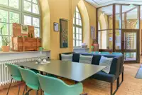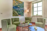 Kaminzimmer, Gewölbekeller, Lesezimmer, Overheadprojektor, Fotokopiergerät, Fernsehgerät, Videorecorder, W-LAN-Anschluss, Tischtennisplatte, Klavier, 60 AutoparkplätzeFreizeit