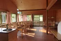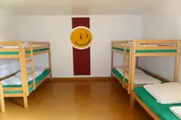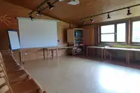 Ein super Haus mitten im Wald mit Spielwiese/Fußballplatz/Volleyballnetz und Lagerfeuerstelle. Das Haus ist ordentlich, die Einrichtung gemütlich und viel Holz sorgen für einen entspannten Wohlfühlcharakter. Die Gruppenräume verfügen über Pinnwände, der große Gruppenraum sogar über einen guten Beamer. Mit Dart, Tischtennis und Kicker wirds auch bei miesem Wetter nicht faad! ;-)