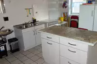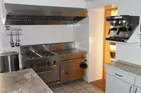 große, komplett ausgestattete Küche mit Geschirrspüler, Mikrowelle, Kühlschrank, Gefrierschrank, Kippbratpfanne, Hockerkocher, Kaffeeautomat, Teebereiter, ElektroherdBeamer, Whiteboard, Piano, Dart, Kicker, DVD-Player, Internetzugang