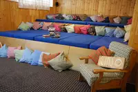 Für die Freizeitgestaltung bietet das Haus zwei Kegelbahnen, einen Spieleraum mit Tischtennisplatten, Kicker, Airhockey und Billard. Darüber hinaus steht euch ein Mehrzweck- Discoraum, ein Wellnessbereich mit finnischer Sauna, Infrarotkabine und Ruheraum, ein Kiosk, ein Fernsehraum sowie ein Sportgeräte- und Gesellschaftsspieleverleih zur Verfügung.Vor traumhafter Kulisse bieten die Außenanlagen des Gästehauses neben einer Kletterwand auch einen kleinen Fussballplatz und ein ebenerdiges Riesentrampolin. Die große Sonnenterrasse lädt zur Entspannung mit Ausblick ins Rosanintal ein.