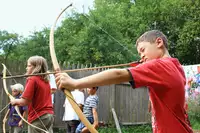 Unterkünfte in altem Gutshof, Parkanlage und Großcampgelände für bis zu 10.000 Personen. Dieses Großcamp ist einmalig in Deutschland und liegt zudem am Mittelpunkt Deutschlands.Freizeit