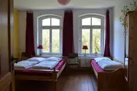 Eingebettet ins das schöne Dorf Groß Fredenwalde bietet das alte Schulhaus charmante Unterkunftsmöglichkeiten für rund 21 Erwachsene, auf Wunsch nehmen wir auch größere Gruppen auf. Es stehen ein 2-Bettzimmer, zwei 3-Bettzimmer, ein 4-Bettzimmer und ein großer Schlafboden mit Matratzen zur Verfügung.