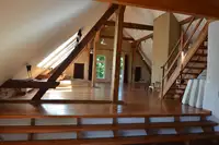 Wir haben das Haus für 3 Tage im April für einen Teamausflug mit unserer Arbeit gebucht. Wir wollten einen Ort, der uns den Alltagsstress vergessen lässt, an dem wir im Grünen sind, die Zeit gemeinsam verbringen können und dennoch die Möglichkeit haben produktiv zusammen zu arbeiten. Es war großartig. Das Haus ist wirklich sehr schön und geräumig. Der Garten ist toll und obwohl wir schlechtes Wetter hatten, haben wir die Zeit für Spaziergänge in der idyllischen Umgebung genutzt. Die Küche zum Seminarraum war top für Selbstverpflegung ausgestattet und der Seminarraum ist sehr geräumig und für uns toll zum gemeinsam Essen, Arbeiten und Brettspiele am Abend. Die Ausstattung ist allgemein eher einfach, aber schön und sauber, für uns war es super. Der Blick im Bett aus den Dachfenstern auf dem Schlafboden ist übrigens toll. Abends Sterne schauen und morgens lacht einen die Sonne an. Wir können es nur empfehlen und kommen gern mal wieder.
