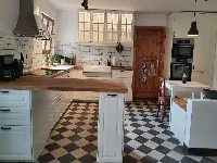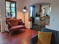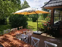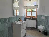 Das Erdgeschoss des Haupthauses bietet Euch einen grossen Wohn/Essbereich mit offener Küche und angeschlossenem Wintergarten, 3 Schlafzimmer mit bis zu 11 Betten und 2 sanierte Bäder.Die Schlafzimmer sind als 2-Bettzimmer plus Aufbettung für z.B. Kinder angelegt.