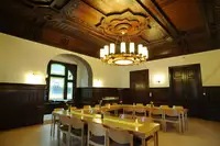 1 x portabler Beamer, 5 x Flipchart, 5 x Moderationswand, Leinwände, Dia-Projektor, 2 x TageslichtprojektorAndachtssaal mit fest installiertem Beamer und Tonanlage, 2 Mikrofone und Mehrspur-Mischpult