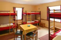 6 verschieden große Zimmer mit Etagenbetten, Waschbecken mit kaltem Wasser, nicht heizbar (2 Ein- bis Zweibettzimmer, 2 Dreibettzimmer, 1 Vierbettzimmer, 1 Sechsbettzimmer) , einen Aufenthaltsraum (Ofenheizung) mit vollständig ausgestatteter Selbstversorgerküche (Elektroherd, Mikrowelle, Geschirrspüler, Kühlschrank sowie Kochutensilien, Geschirr und Besteck sind vorhanden), einen Sanitärbereich mit 3 WC´s und 2 Duschen, ein Beamer mit HDMI-Anschluss, ein E-Piano und eine Gitarre, Freibereich mit Sitzgelegenheiten, Grill und Feuerschale