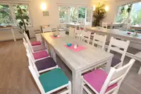 Die ca. 110 Betten verteilen sich auf hübsche 2-5er-(Familien-)Zimmer plus Studios, alle mit Dusche/WC und Balkon oder Terrasse. Ein Haus für alle Fälle - eine Oase des Wohlfühlens - Idyllische Ferienanlage mit Traumblick auf die Karawanken und eigenem Badesee - Sonnen auf der Liegewiese am See, Gruppenarbeiten im Kaminzimmer, Tanzen auf Parkett, Beachen auf Sand, Tennis oder Bolzen auf Asche - jeder findet in der großen Ferienanlage seinen Entfaltungsspielraum, sowie jede Menge Platz, innen und außen!Die großen Aufenthaltsräume und das Kaminzimmer sind ideal für Familien und Gruppen aller Art. Und an der Bar klingt der Tag gemächlich aus, z. B. bei einem Gläschen Rotwein.
