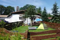 Spielwiese, Kinderspielplatz, Volleyballplatz, Fußballfeld, Lagerfeuerplatz, Grillplatz, Räucherplatz, Wandern, Wassersport, Radfahren. 100 m zum Badesee, Hunde sind willkommen, Tankstelle 1km, Supermarkt 4km, Arzt / Tierarzt 4km, Apotheke 1km, Erlebnisbad 29km, Fahrradverleih 4km, Autobahnanschlus, Bahnanschluss 22km, Ostsee ca. 40 kmAusflugsziele