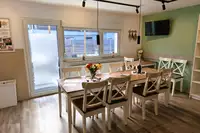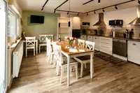 Wir haben uns mit 6 Kindern und 6 Erwachsenen im Haus sehr gut aufgehoben gefühlt. Für jeden und jede gab es einen Lieblingsplatz. Da die Kinder alle 6 im großen Dachzimmer schliefen, hatte wir Erwachsenen ruhige Nächte. Besonders gefallen hat mir der große Seminarraum mit offenem Kamin, Gymnastikmatten, kleinen Klappsesseln und bunten Sitzkissen. Mit Weihnachtsbaum war es für uns der ideale Raum für unsere Festtage aber auch fürs "Kinderturnen", das die Enkel sich von Oma wünschten und für gemütliches Zusammensein am Kamin am späten Abend. Vielen vielen Dank für die Freundlichkeit und Hilfsbereitschaft der Vermieter - sogar verschiedene Schlitten durften wir ausleihen und so die wunderbare Landschaft im Schnee genießen. Kompliment auch für die gute Küchenausstattung und das schöne getöpferte Geschirr.