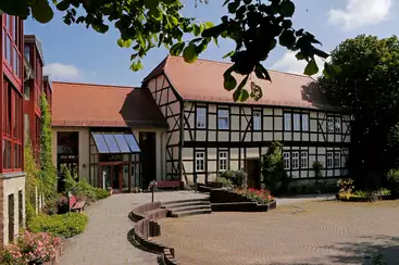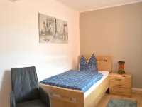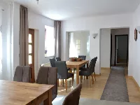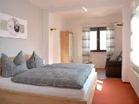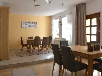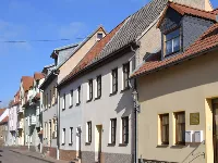 Auf 2 Etagen bietet das individuell und modern eingerichtete Ferienhaus Platz für bis zu 12 Personen. Es liegt in einer ruhigen Seitenstraße in der Nähe des Marktplatzes von Hettstedt. Einkaufsmöglichkeiten, Bäcker und Gaststätten sind fußläufig erreichbar. Auf einem angrenzenden, abgeschlossenem Hinterhof stehen 6 Parkplätze zur Verfügung.Das große Esszimmer im Erdgeschoss bietet zum gemütlichen Beisammensein ausreichend Platz für 12 Personen. Ein kleines Wohnzimmer mit Fernseher und Sofaecke grenzt direkt an.