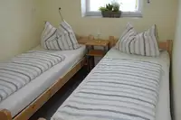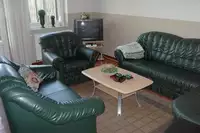 Unser behinderten- und rollstuhlgerechtes Haus bietet Platz für 12 Personen. Es verfügt über 5 Schlafzimmer, 2 Bäder, Wohn-/Esszimmer, Küche, Terrasse. Desweiteren ist unser Haus ausgestattet mit Doppelbetten, Etagenbetten, großes ausziehbares Sofa mit Ecke und Sessel, Kabel-TV, Esstisch mit zwölf Stühlen, voll ausgestattete Küche (Spülmaschine, Mikrowelle usw.), ein behindertengerechtes Bad mit Dusche und WC.Im Erdgeschoss befinden sich 2 Schlafzimmer (je 1 Doppelbett), behindertengerechtes Badezimmer, Wohnzimmer, Abstellraum und die Küche. Im Dachgeschoss befinden sich 3 Schlafzimmer (2 Schlafzimmer mit je 1 Doppelbett, 1 Schlafzimmer mit 1 Doppelbett und ein Hochbett) und ein großes Badezimmer.