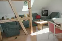Das EG hat zusätzlich einen Bücherschrank mit über 150 Büchern (auch viele Kinderbücher). Zustellbar sind Gästeklappbetten und ein Babybett.