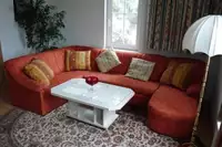 Wohnzimmer: EG mit großer Polstergarnitur, OG mit Polstergarnitur und Esstisch für 10 Personen