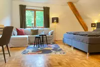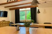 Ein tolles Haus! Ideal für eine Gruppe Erwachsener/Paare; z.T. mit Kindern möglich Wunderschön und liebevoll eingerichtet/ausgestattet. Sehr hochwertig. Die frischen Blumen zur Begrüßung haben mich besonders erfreut. Die Küche ist super ausgestattet und geräumig, so dass auch das gemeinsame Vorbereiten des abendlichen Festmahls Freude bereitete. Genial: große Töpfe! Schöner und zweckmäßiger Speiseraum. Super Betten. Weitere Highlights: der Kachelofen in der guten Stube, der Billiard-Tisch. Gerne wieder!