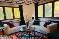 Die gesamte Familie war total begeistert von a) der Lage des Hauses b) der Ausstattung der Zimmer, Bäder und vor allem auch der Küche c) dem liebevollen Empfang mit den vielen frischen Blumen in den wohlgeheizten Räumen - letzteres vor allem für die beiden älteren Damen sehr angenehm!!! d) der schönen Terrasse mit der tollen Aussicht und dem Partyraum, den fand die Jugend natürlich sehr cool! e) den absolut super-freundlichen Telefonaten mit der Bäckerei Schmiederer, der Abwicklung unserer Bestellung und der wunderschönen und sehr leckeren Schwarzwälder-Kirsch-Torte Ein Teil der Gruppe hatte am Samstag vom Haus ausgehend eine schöne Wanderung unternommen, ein Teil war im Ort und Kurpark unterwegs. Den Sonntag Nachmittag verbrachten wir mit einem Rundgang auf dem Dollenberg. Auch hier muss man echt sagen, die Lage des Hauses ist perfekt! In Summe hatten wir ein wirklich tolles Familienwochenende mit einem unvergesslichen Party-Abend zum 80sten Geburtstag unserer Mama.