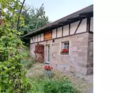 Bauernhaus aus dem 19. Jahrhundert im Naturpark Haßberge. Unterkunft für bis zu 19 Personen in 6 Schlafzimmern mit privater Atmosphäre. Auf Wunsch kann zwei weitere Zimmer mit Bad im 5 Fußminuten entferntem Gästehaus dazu gemietet werden.Stilvoll mit z.T. antiken Möbeln eingerichtet. Eine lange Tafel, sowie die gut ausgestattete Landhausküche bieten den idealen Rahmen zum Feiern mit der Familie oder Freunden. Hier schlafen Sie in gemütlichen alten Betten, müssen aber auf modernen Komfort, wie Zentralheizung bzw. Fußbodenheizung und Wannenbäder nicht verzichten.