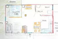 Ideal für größere Gruppen- oder Familientreffen, an denen viele separate Schlafzimmer benötigen werden und Selbstversorgung gewünscht ist. Sowohl in der großen Küche als auch unter dem Freisitz finden alle Platz. Die Küche ist sehr gut ausgestattet. Die Zimmer z.T. mit separatem Bad sind einfach, aber sauber - uns hat es an nichts gefehlt. Bei Bedarf kann eine weitere Wohnung (ehemaliger neu ausgebauter Stall) dazu gemietet werden. Der Kontakt zur Vermieterin war sehr nett und unkompliziert. Dadurch, dass der Hof durch ein großes Tor von der Durchgangsstraße abgeschlossen ist, können auch kleinere Kinder dort gefahrlos spielen. Bettwäsche, Handtücher, Toilettenpapier und Spültabs sind selber mitzubringen.