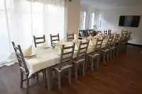 Die Kleine Villa verfügt über einen großen Gruppenraum mit einer langen Tafel für 20 Personen.10 Schlafzimmer, 5 Bäder, Wellnessbereich mit finnischer Sauna, Fußbecken, großzügiger Dusche mit Regendusche, Schwallbrause und Kneipschlauch