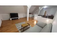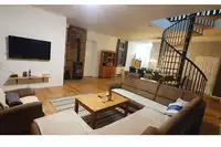 EG Küche, Wohn-Esszimmer 60 m2 mit Satelliten-TV und einen Kamin.