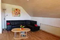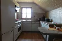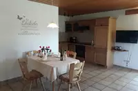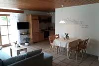 Unsere Ferienwohnungen sind komplett eingerichteten : Küchen mit Kaffemaschiene, Dolce Gusto, Toaster, Eierkocher, Wasserkocher. Im Wohnberreich ist ein Flachbildschirm, und im Aufenthaltsraum auch.Grillstelle, Spielplatz, Parkplatz ist alles direkt am Haus. Wir haben einen Hobbyraum mit Tischtennisplatte und Tischkicker. Hunde sind verboten.